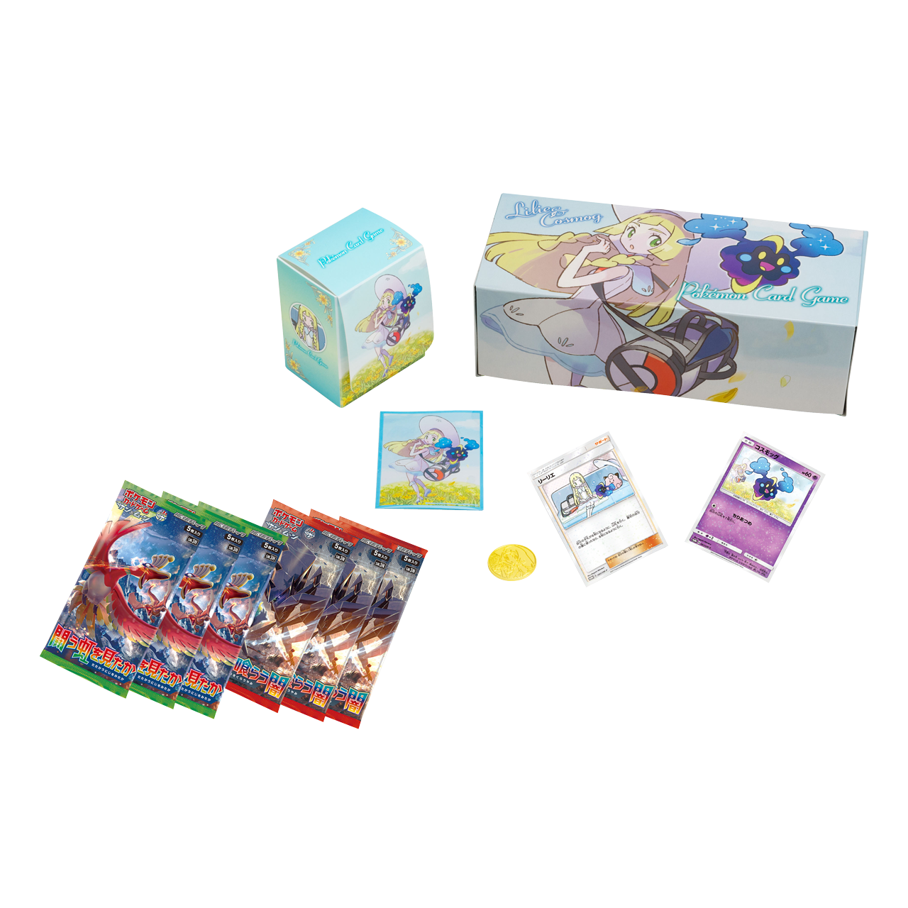 スペシャルBOX リーリエ&コスモッグ その他ケース 2025.09.28 発売日:2017年 6月17日(土) 商品名:スペシャルBOX リーリエ&コスモッグ 登場ポケモン:コスモッグ 登場キャラクター:リーリエ 備考:デッキケース*1 デッキシールド*1 ロングカードボックス*1 TOYGER USEDマーカー 4枚入り 木製 Amazonで購入する TOYGER SASH CASE [一面透明で中身が見えるデッキケース] 省スペースでカード鑑賞・管理 ローダーや硬化ケースも対応 (ブラック) Amazonで購入する